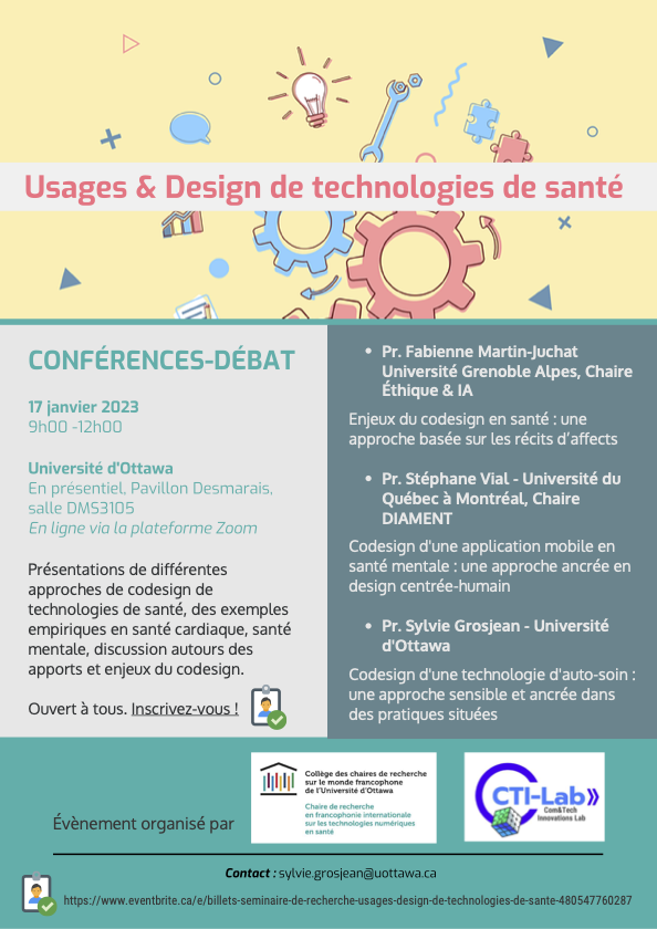 À travers la présentation de leurs approches et de leurs projets, ces trois chercheurs aborderont les apports et enjeux du codesign de technologies numériques de santé.